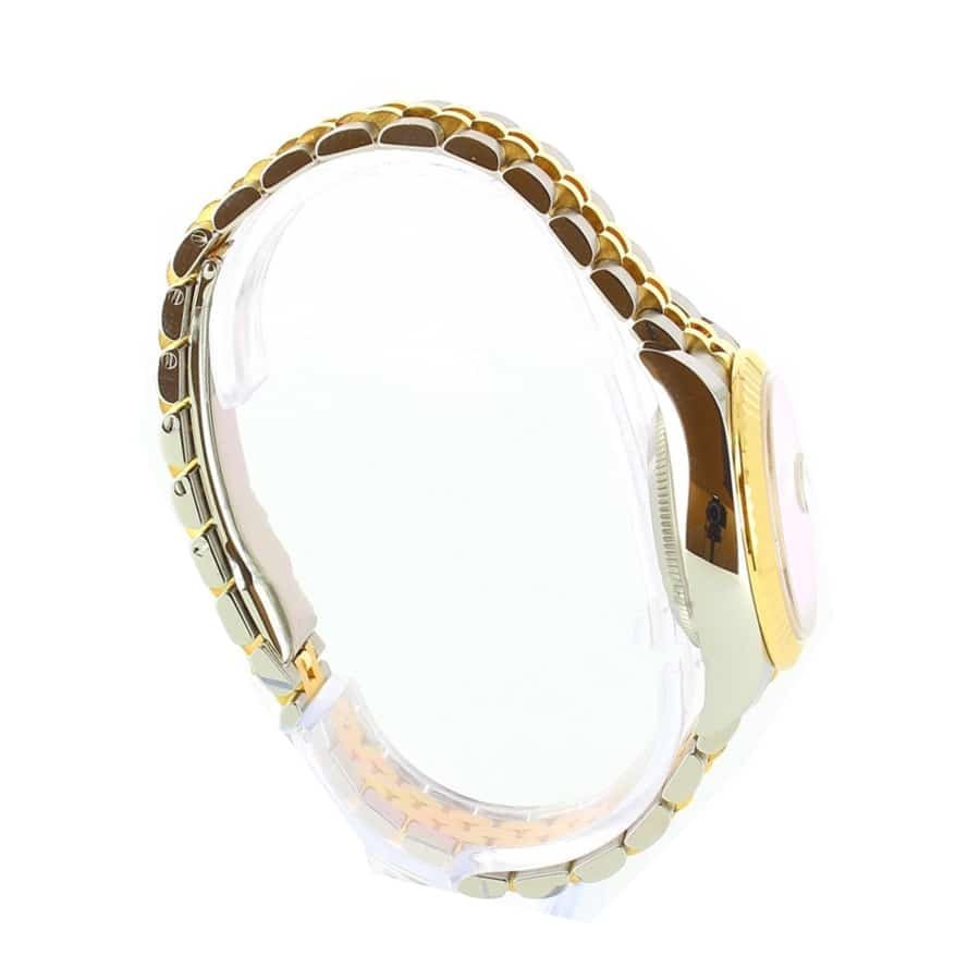 The Rolex Datejust Diamond Dial Replica features a mesmerizing mother-of-pearl dial adorned with gem-set hour markers. complemented by elegant stick hands made from 904L stainless steel. The Jubilee bracelet. also constructed from durable 904L stainless steel in a radiant yellow gold color. offers adjustable links for a perfect fit on any wrist. The fold clasp ensures security and ease of wear. Equipped with chronometer-certified automatic movement caliber 2236. this timepiece delivers exceptional accuracy and boasts a power reserve of approximately 60 hours. With its 30-meter water resistance. this replica watch is designed to withstand the demands of everyday wear. Backed by a full 2-year international warranty. the Rolex Datejust Diamond Dial Replica is the epitome of excellence. capturing the essence of luxury and style in every detail.